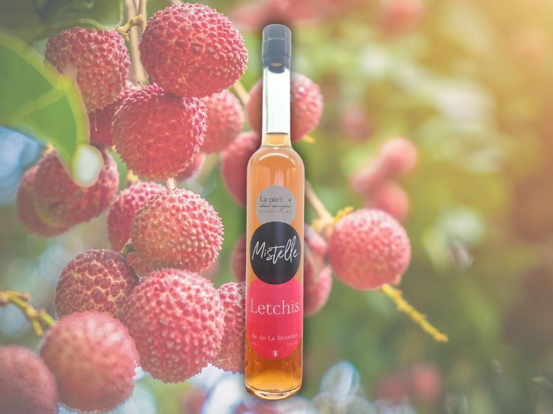 La mistelle de letchi est une boisson alcoolisée sucrée obtenue par mélange de moût de fruit frais (jus non fermenté) et d’alcool pour obtenir un assemblage titrant à environ 17 degrés. Ce procédé se nomme le mutage. L’alcool ajouté va tuer les levures naturellement présentes dans le moût. Cela empêchera toute fermentation et préservera l’arôme et le sucre du fruit. Cette alcool ajouté est l’eau de vie de letchi de La Réunion.